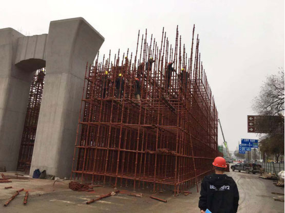 本項目全長(cháng)1204.559m,其中橋梁全長(cháng)684m,上跨武陵山大道節點(diǎn)274m,(4跨:55m+82m+82m+55m),為變高度全鋼箱梁;上跨天崇路節點(diǎn)橋梁110m(3跨:30m+50m+30m),為變高度預應力混凝土連續梁;西側引橋長(cháng)300m(10跨:10×30m),為等高度預應力混凝土連續梁。子午橫斷面為50m,橋梁橫斷面為17.5m,該道路為城市主干道,雙向8車(chē)道,設計車(chē)速50km/h,橋梁使用年限100年,車(chē)行道采用瀝青混凝土路面,設計合理使用年限15年。