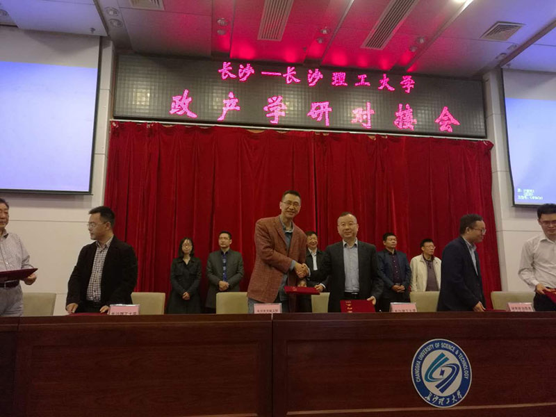 為進(jìn)一步加強長(cháng)沙與高校的科技合作交流,加快高校的科技成果在長(cháng)轉化,10月13日上午,“長(cháng)沙-長(cháng)沙理工大學(xué)政產(chǎn)學(xué)研對接活動(dòng)”在長(cháng)沙理工大學(xué)云塘校區舉行。圖為我公司與長(cháng)沙理工大學(xué)簽署對接協(xié)議。