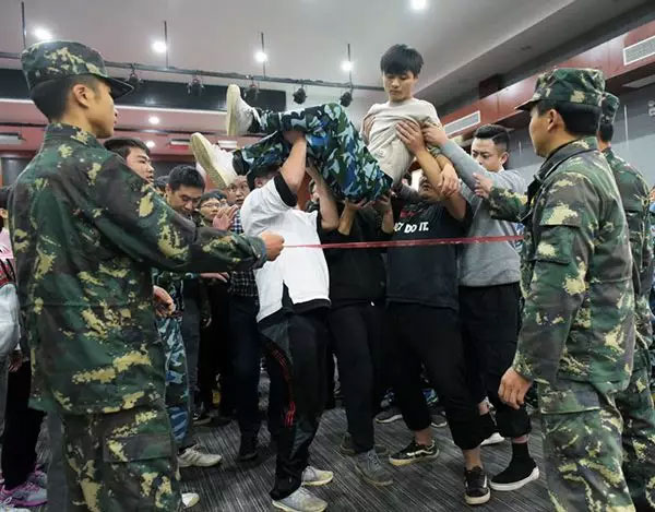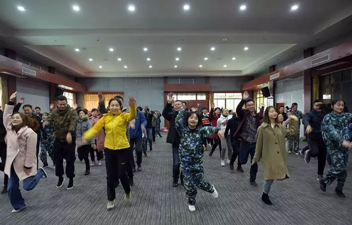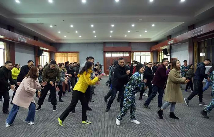 我們一齊圍成一個(gè)圈,互相拍拍肩、捶捶背,認識熟悉,鼓勁加油。玩兒個(gè)“聽(tīng)口令”的小游戲,被抓到的同志可是要上臺表演節目呢!