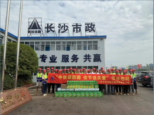 公司總經(jīng)理石含,副總經(jīng)理丁紅軍為靳江河西岸(含東山灣路)綜合整治工程項目、青竹湖統征儲備地塊配套路網(wǎng)工程項目 、秋江西路等六條路工程項目、長(cháng)沙機場(chǎng)中軸大道工程項目的一線(xiàn)員工發(fā)放了月餅、水果、礦泉水等慰問(wèn)品,帶去公司對他們的問(wèn)候和囑托,對大家的敬業(yè)奉獻精神表示高度贊揚,并叮囑大家一定要保重身體,注意安全,圓滿(mǎn)完成施工任務(wù)。