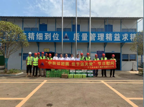 9月7日,在中國傳統節日中秋節來(lái)臨之際,公司黨委委員、總經(jīng)理石含,公司黨委委員、副總經(jīng)理丁紅軍領(lǐng)導一行深入公司重點(diǎn)項目開(kāi)展中秋慰問(wèn)活動(dòng),為節日里仍然奮戰在一線(xiàn)的職工送上了誠摯的祝福。
